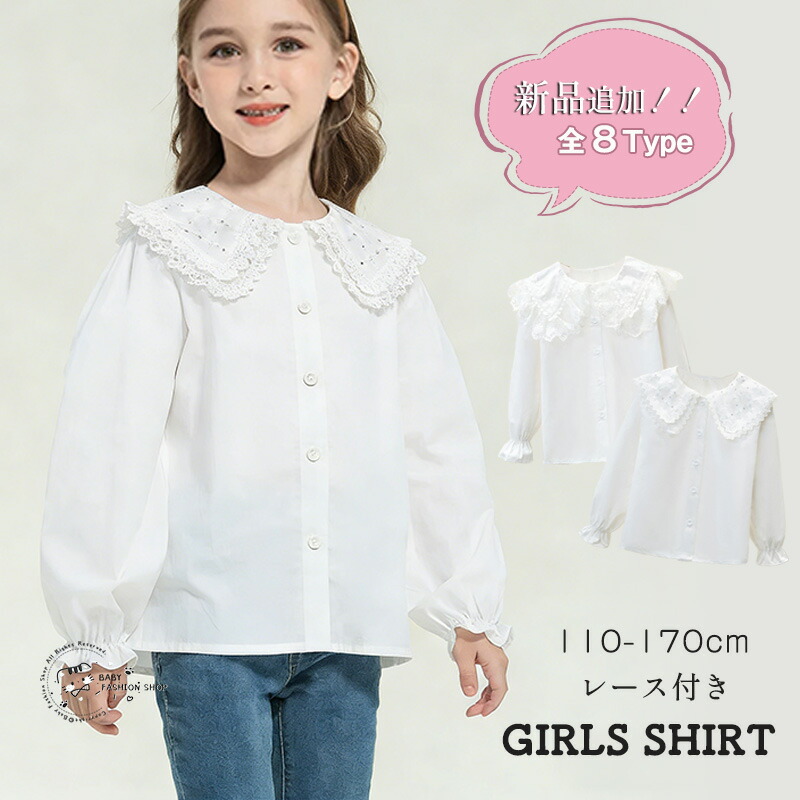 子供 キッズ ブラウス 女の子 シャツ レースの襟 おしゃれ ホワイト 白 長袖 春秋 フォーマル かわいい フリル トップス ジュニア 110 120 130 140 160 170cm 入 150