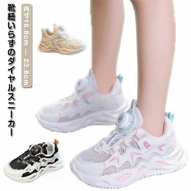 歩きやすい 可愛い ダイヤル式スニーカー 脱ぎ履き ジュニア スニーカー 子供靴 幅広 女の子 男の子 キッズ 紐なし