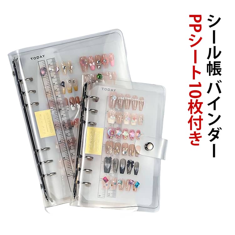 ネイルチップ収納ブック シール帳 バインダー PPシート10枚付き 女の子 透明 台紙 クリア はがせる A4 A5 A6 リフィル10枚 リフィル差し替え可能 保管 交 Oリング式