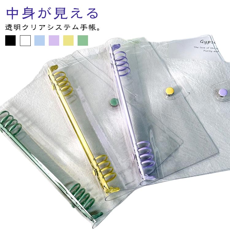 システム手帳 ノート クリアバインダー スケジュール パープル イエロー グリーン ブルー ホワイト ブラック