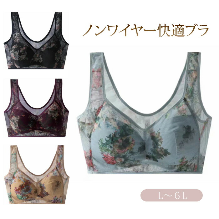 ノンワイヤーブラ ハーフトップブラ ブラジャー カップ付き ホック無し ノンワイヤー シニアブラ 人気 おしゃれ 大きいサイズ 通気性 花柄 軽薄 幅広肩ベルト 吸湿性