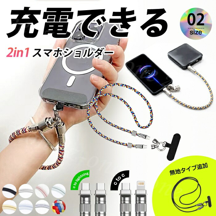 スマホショルダー ストラップ 充電ケーブル 2in1 充電コード 春新作 type-C Lightning 斜めがけ 肩掛け おしゃれ メンズ レディース ユニセックス スマホチェーン アイ 男女兼用