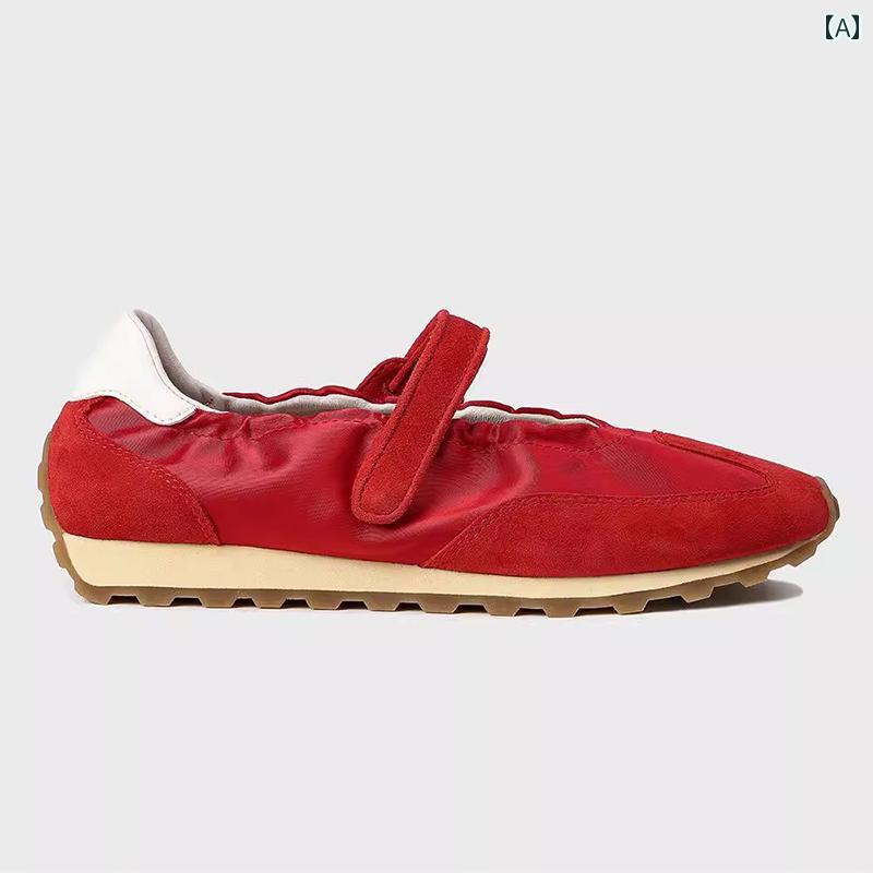 靴 フラットシューズ レディース メリージェーン レトロ バレエ カジュアル レッド レジャー スニーカー リラックス