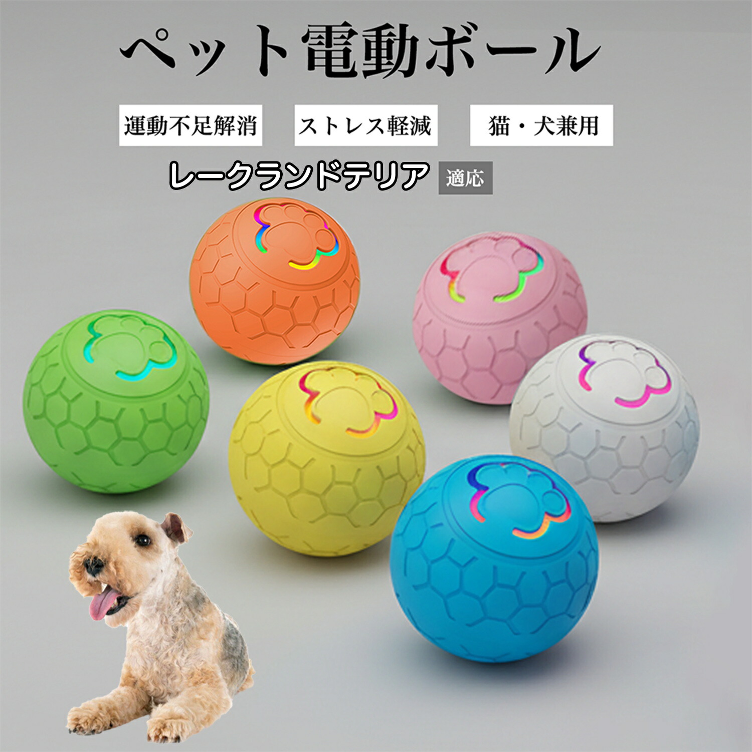 ペット用 電動 おもちゃ ボール 自動 回転 不規則 動作 光る USB 充電 Type-C 静音 設計 2モード 切替 犬 猫 対応 室内 遊び 用 レークランドテリア犬 レークランド 留守番
