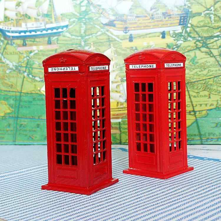 貯金箱 イギリス風 ブリティッシュスタイル 亜鉛合金製 レトロ 電話ボックス テレフォンブース オブジェ 置物 おしゃれ レッド 複数サイズ対応 インテリア雑貨