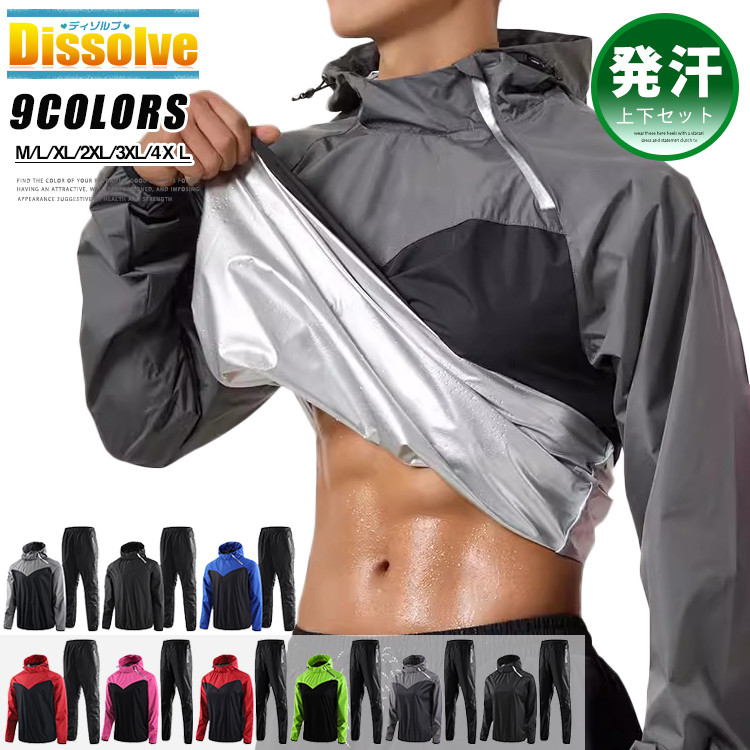 サウナスーツ メンズ レディース 発汗 上下セット プルオーバー 男女兼用 洗える 燃焼 トレーニングウェア 筋トレ 汗 ジョギングウェア スポーツ ジム 高機能 ランニングウェア フィットネス