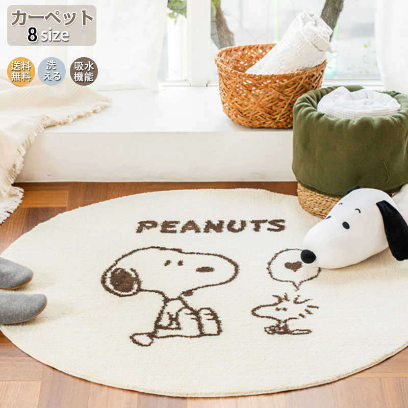 カーペット スヌーピー ラグ 洗える 円形 ラグマット おしゃれ 北欧 ラグカーペット オールシーズン ウォッシャブル 床暖房対応 じゅうたん 滑り止め 大判 耐磨 ふわふわ 寝室 雰囲気 子 高級感