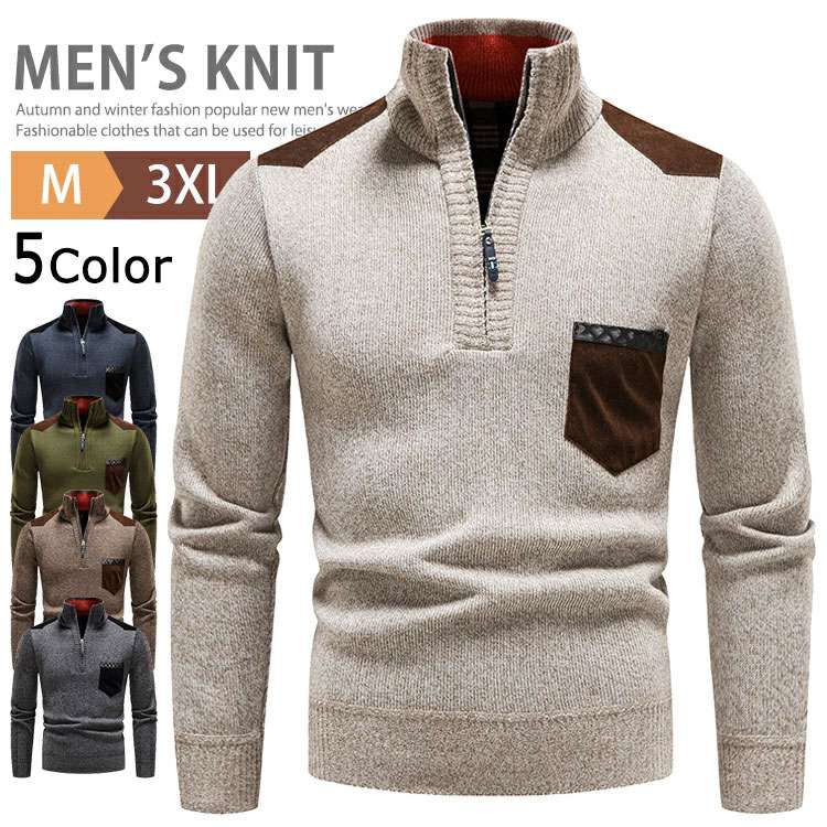 M~3XL ニットセーター メンズ ハーフジップ ハイネック 裏起毛 厚手 ゴルフウェア セーター トップス トレーナー 長袖 カジュアル あったか ファスナー 切り替え 冬物 ビジネス ニット 秋冬