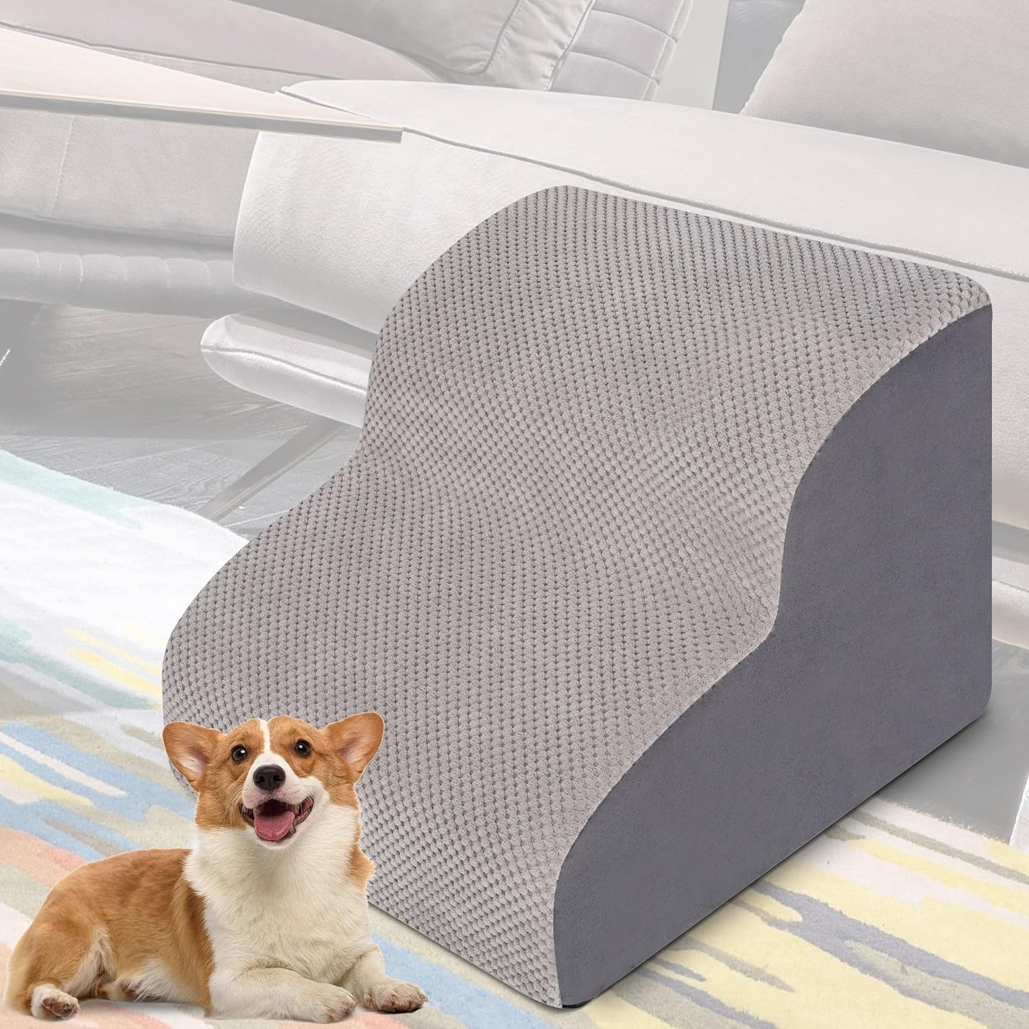 犬ステップ ドッグステップ ペット用階段 2段 スロープ 滑り止め 耐荷重30 洗濯便利 老犬介護 ケガ防止 グレー 小型犬