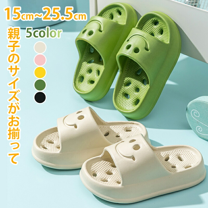 スリッパ サンダル キッズ 夏 子供用 夏用 笑顔 穴あき 室内履き シャワーサンダル カップル ベランダ 滑り止め お風呂 浴室 バスルーム シャワー 軽い シンプル 可愛い オシ 履きやすい