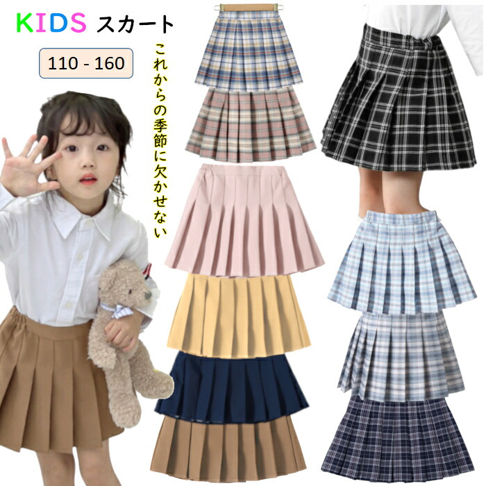 キッズスカート 子供 プリーツスカート 女の子 インナーパンツ 制服 スカート キッズ ジュニア チェック柄 フォーマル カジュアル 発表会 通学 120 130 140 160 170 JK 150