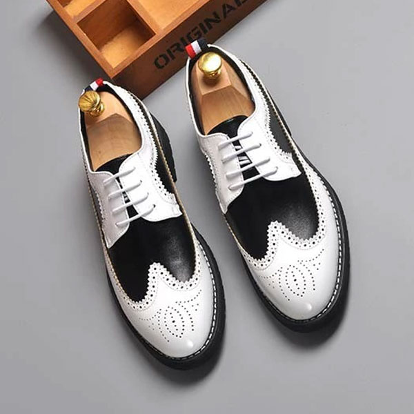 カジュアルシューズ メンズ ウィングチップ レースアップ ローカット メダリオン エナメル加工 春 夏 ヨーロピアン おしゃれ ブラック ホワイト 4cm身長 大人