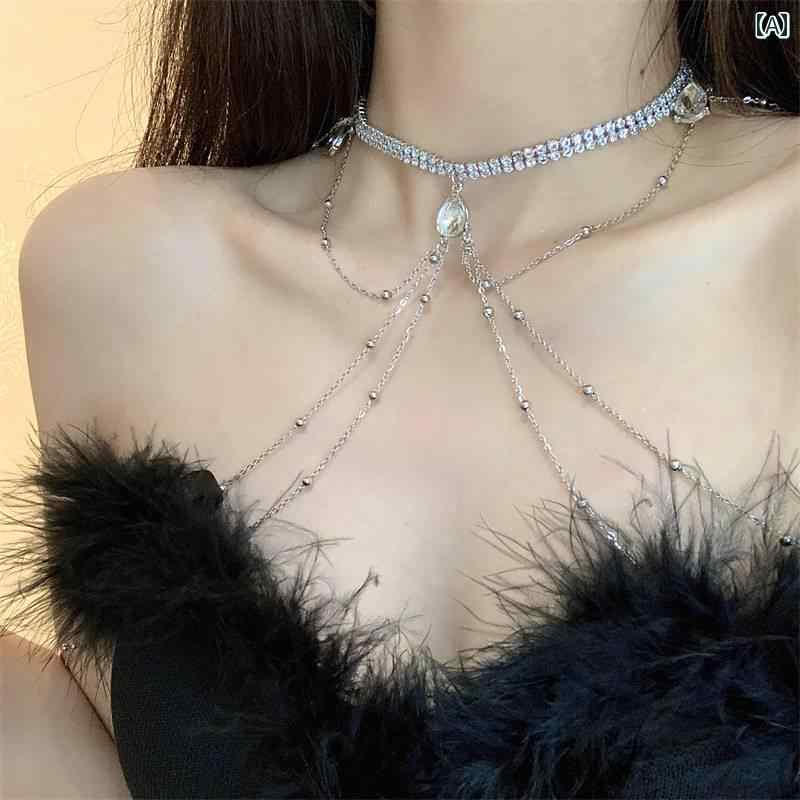 ネックレス ボディ チェーン アクセサリー 女性 ウェディング ショルダー きらきら シルバー おしゃれ エレガント 上品 ゴールド