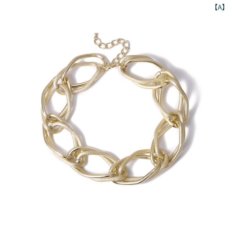 ネックレス レディース 欧米風 個性的 大ぶり ヒップホップ 普段使い ストリート カジュアル 合金 太めチェーン チャンキーチェーン 幾何学模様 オーバルチェーン 電気メッキ加工 光沢マット切り替え