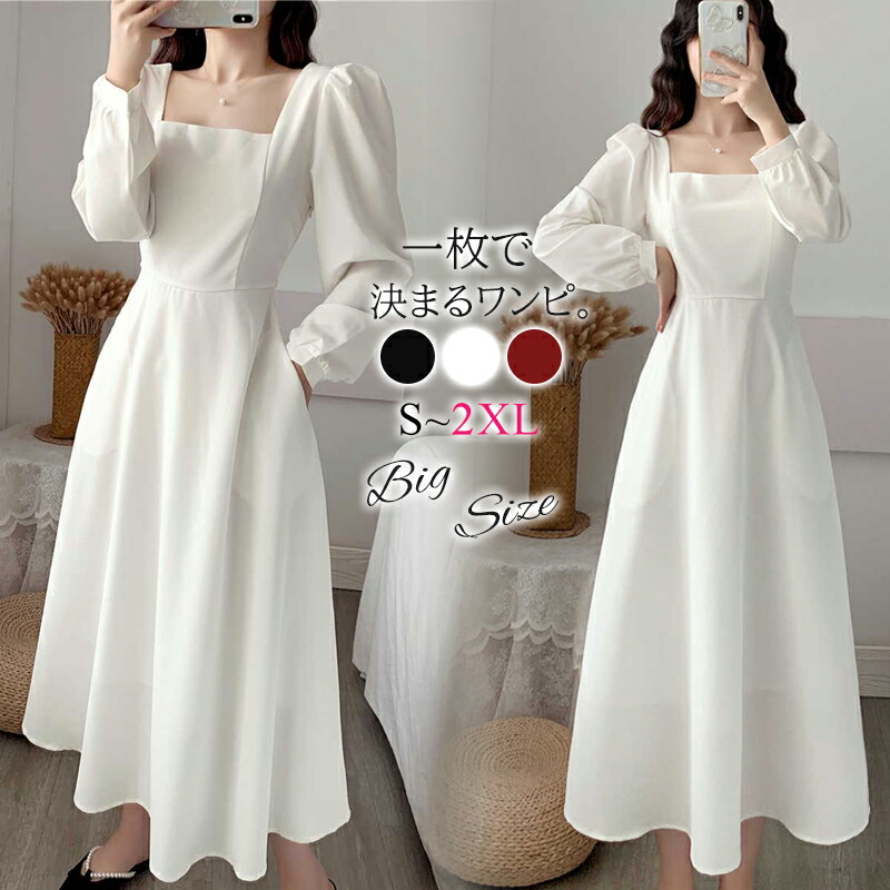 ワンピース 長袖 レディース 二の腕カバー ホワイト ブラック ワインレッド ロングワンピース 春 夏 秋 きれいめ フォーマル トレンド 大人 韓国風 オフィスカジュアル 通勤 パ お嬢様