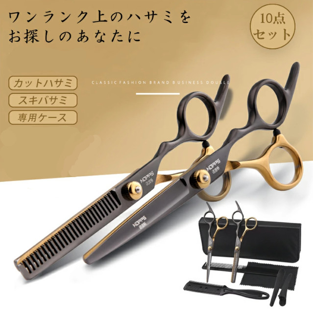 ハサミ カット すきバサミ ヘアカット 10点セット シザー セニング 散髪セット 散髪ケープ付き スキバサミ セルフカット 前髪 髪切り ウィッグはさみ 散髪 グッズ ケース付き 美容師 プロ 道具