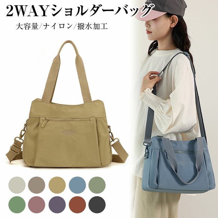 2way ショルダーバッグ トートバッグ ナイロン バッグ レディース 斜めがけ 軽量 大容量 大きめ 通勤 旅行 トラベル お出かけ ハンドバッグ ポシェット 撥水加工 おしゃれ 手提げ