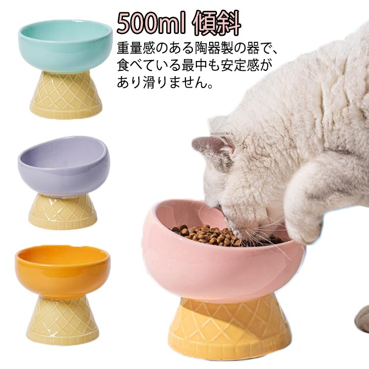 おしゃれ 猫 傾斜 猫の食器 フードボウル 餌皿 犬 食器 高さがある 餌入れ 食べやすい 猫用食器 ご飯皿 吐き戻し 陶器 猫皿 500ml ご飯台 食器台 フードボール フード 餌台